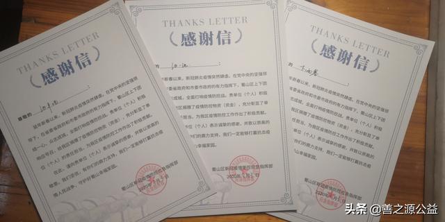 2020年3月3日,善之源小志愿者收到了蜀山区新冠疫情防控应急指挥部的《感谢信》,这52封《感谢信》是对抗疫小战士们行为的认可,更是莫大的鼓励和鞭策。