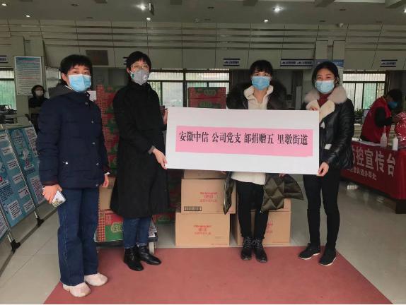 安徽中信房地产土地资产价格评估有限公司捐款60000元,中信党支部捐赠防护服、食品等物资价值18730元;