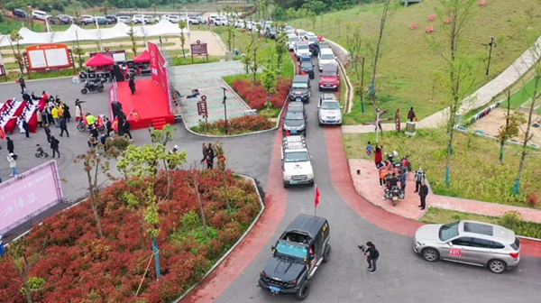 发车仪式过后,两百余辆越野车组成一条震撼的“长龙”从茶山花海景区出发,经“中国红岭公路”茶山花海景区、油坊店乡莲花山、古碑宋河村、花石乡千坪村、马鬃岭景区、天堂寨景区、黄狮寨等,对乡村和景区景点进行了巡游。