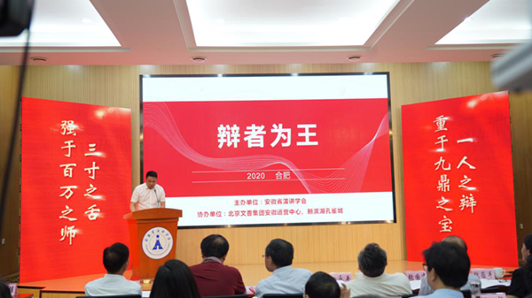 2020年6月7日上午安徽省演讲学会“文香杯”“想说就说”自由即兴论坛(辩论)在安徽邮电职业技术学院学术报告厅举办,来自全省各地市的嘉宾、常务理事、部分理事和会员代表200余人参加,省演讲学会执行会长卜幼凡和安徽广播电视台主持人白羽共同主持了此次会议。