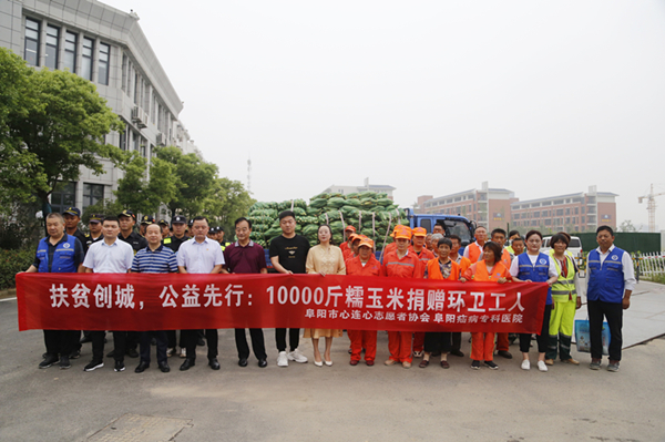 2020年7月21日,阜阳市心连心志愿者协会和阜阳疝病专科医院,开展“爱心助农扶贫帮困”志愿服务活动,捐赠仪式在颍州区城市管理行政执法局门前举行。