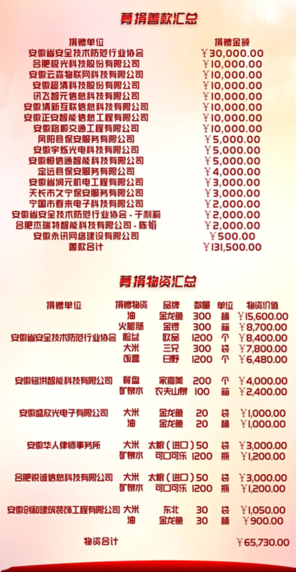 洪水无情,安防有爱。自汛情发生以来,在协会的组织和号召下,各会员企业闻“汛”而动,积极履行企业社会责任,纷纷以不同形式踊跃投身抗洪抢险,为防汛救灾贡献力量;各安防企业家始终心系防汛一线、情牵受灾群众,慷慨解囊伸出援助之手,用实际行动书写大爱与担当。