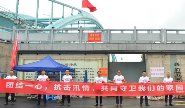 芜湖砻坊生产力促进中心有限公司以抗击疫情的姿态和精气神,严防死守,守牢防汛的“大门”,用责任和担当筑起防汛的铜墙铁壁。7月初芜湖市长江、青弋江相继超过警戒水位,芜湖砻坊生产力促进中心有限公司极速响应区委和大砻坊街道党工委统一部署,落实大砻坊科技文化园区袁泽桥防洪闸点24小时值守任务,并迅速成立防汛工作领导小组,开展人员调动与部署,购买防汛物资,搭建固定岗,实行24小时轮岗值班、巡查,确保全园区人员以及园区段防洪墙安全渡过汛期。7月中旬对无为市泉塘镇泉塘社区进行脱贫攻坚和抗洪防汛捐款慰问,向泉塘社区捐赠3万元,协助泉塘社区渡过难关。