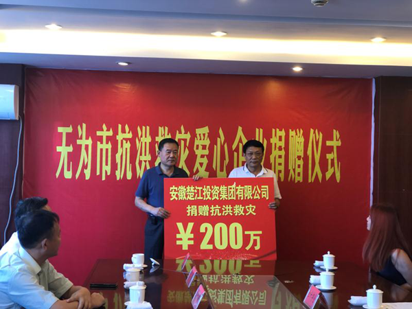 商会常务副会长单位——安徽楚江投资集团有限公司得知无为市正经历着一场百年不遇的特大洪水,面临着长江和内河“双线作战”的严峻形势,经济损失严重,数万名受灾群众被迫转移。了解灾情后,第一时间寻找相关捐赠渠道,向无为市红十字会捐赠人民币200万元,支援无为市救灾重建工作。据悉,楚江集团是无为市首批捐款的企业。