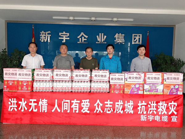 商会会员单位——新宇电缆集团股份有限公司党支部主动联系驻扎在高沟镇防汛抗洪一线指挥的无为市委匡健副书记、市人大周永志副主任,询问高沟镇防汛情况,当了解情况后,76岁高龄的新宇电缆集团公司党支部何帮定书记立即组织人员、安排采购矿泉水、方便面、八宝粥和牛奶等物资,奔赴现场慰问,支援防汛救灾工作。