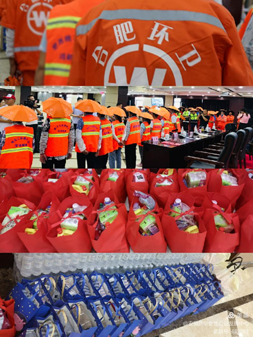 随后蜀山区委常委、宣传部部长赵斌发表讲话:环卫工人是城市的美容师,我们生活环境的每一份美好变化都包含着广大环卫工人们的辛勤汗水,在最平凡的岗位上,做出了不平凡的业绩,尊重环卫工人就尊重劳动人民的具体提现,今天我们联合安徽新华女性公益发展中心为环卫工人准备了爱心物资,充分体现了党委政府和社会公益组织对大家的关怀和关爱。国庆节、中秋节将至为营造干净整洁有序的城市环境,我们要继续开展爱国主义运动,坚持从群众需求出发,围绕老旧小区、背街小巷、城中村拆迁裸露地块等脏乱差问题扎实开展“三治三变”整治行动,打造优美生活环境,为广大市民营造浓厚的节日氛围。习近平总书记一直强调劳动最光荣、劳动最崇高、劳动最伟大,劳动最美丽!坚持从群众需求出发。