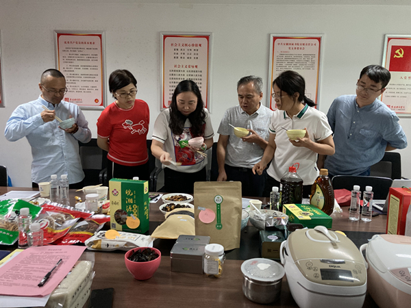 为了保证采购程序科学严谨、食品品质安全健康,财务往来清晰透明,基金会特邀请国祯集团各部门行政、财务、人事等10多位领导莅临样品展示会场。基金会秘书长施照玲介绍了来自仙寓镇农村合作社的30余种备选样品,随后各位领导通过望、闻、问、尝的方式亲自品鉴,对于采购方式、数量及价格进行了详细的论证、比较,最后几款价优物美的产品顺利入选中秋福利采购名单。