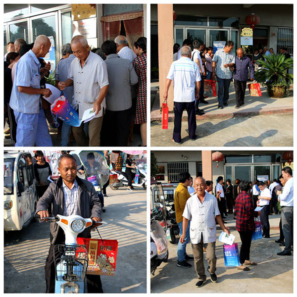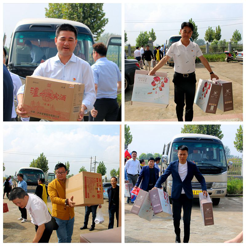“金秋沃野、瓜果飘香”。根据帮扶计划安排,9月23日,由商会党支部书记、会长许成汉带队,常务副会长兼秘书长田同来、公益慈善中心负责人胡克城、资源整合中心负责人赵德成、副会长张建方、金融事业部副主任陈松、郑学通,理事杨武、副秘书长朱堆文,安徽省农科院作物所刘泽博士等一行10余人的爱心团,满载慰问物资再出发,第三次前往牛庙村,向老党员、大病贫困户进行国庆、中秋两节慰问,向贫困大学生捐资助学,同时给当地村民进行农业技能培训。爱心团的到来受到阜阳市商务局派驻牛庙村第一书记、驻村工作队队长张平,黄桥镇党委委员刘峰、牛庙村村书记朱学伟、阜阳市商务局驻牛庙村扶贫工作队副队长李和平的热情迎接。