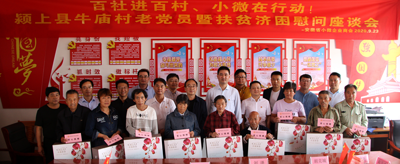 为认真贯彻落实安徽省民政厅“百社进百村”脱贫攻坚的任务部署,安徽省小微企业商会结对帮扶颍上县黄桥镇牛庙村。自“百社进百村”助力脱贫攻坚活动启动以来,商会领导班子高度重视,多次组织专项会议探讨,根据牛庙村的实际情况,制定出切实可行的年度帮扶计划。