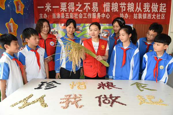 “粮食日”,当涂县社会组织从关注留守儿童出发,组织开展 “惜粮节粮,从我做起”主题教育活动。