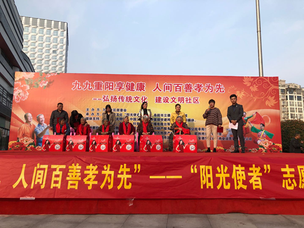 在九九重阳节来临之际,由阜阳市颍州区文峰街道万达社区居委会联合立德文化“阳光使者”志愿者服务驿站、阜阳市立德文化交流馆等共同举办以“九九重阳享健康,人间百善孝为先”为主题的弘扬传统美德文艺汇演在颍州区万达广场举行。