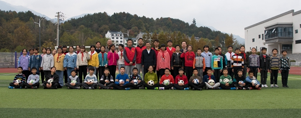 会后,赵皖平一行看望了要在金寨支教一年的安徽体育运动职业技术学院的大学生志愿者老师,为他们的奉献精神点赞,赵皖平说,志愿者是孩子认识、了解足球的桥梁,各种专业的志愿者老师越多,为孩子们走出大山、了解外部世界建构起来的桥梁也就越多。随后,赵皖平走入教室与孩子们亲切交流,并现场观摩了志愿者老师的体育课教学。