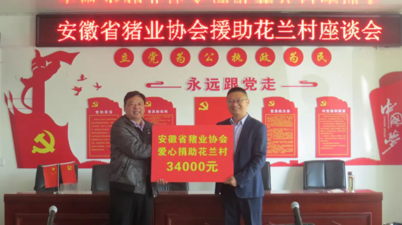 1月10日,省猪业协会一行在杨勇会长的带领下,赴花兰村举办产业扶贫座谈会,并现场捐款34000元。