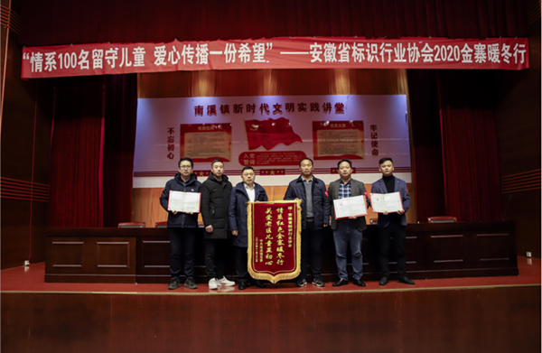 初冬时节寒气逼人,关爱活动温暖人心。11月28日上午,安徽省标识行业协会组织开展了“情系100名留守儿童 爱心传播一份希望”安徽省标识行业协会2020金寨暖冬行爱心公益活动。安徽标协爱心会员单位向南溪镇、汤家汇镇100名留守儿童捐助价值10多万元的入冬物资及现金。