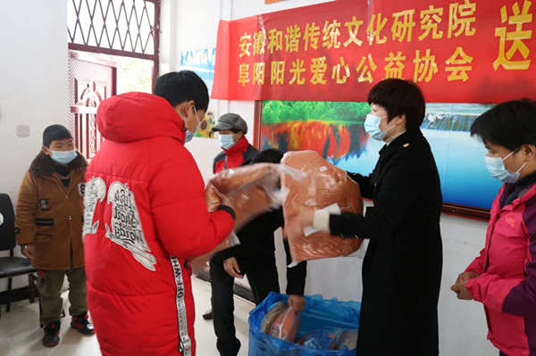 12月23日上午,安徽和谐传统文化研究院携手阜阳阳光爱心公益协会和安徽沃德堡整体家居定制有限公司一同走进阜南县许堂乡大桥中学,为该校“失依”孩子送来羽绒袄、棉鞋、耳暖等御寒物品和学习用品。