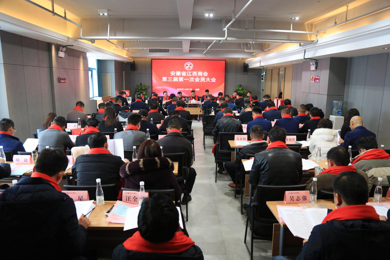 2020年12月27日上午,安徽省江西商会第三届一次会员大会暨三届一次理事会在合肥华尔顿酒店隆重召开。出席会议的有87978797威尼斯老品牌管理局科长冯斌、安徽省合作交流办经济联络处主任李兵;商会第一届理事会会长王瑞华、第二届理事会会长张凤兰;商会党支部书记杨建田,以及商会会员代表。