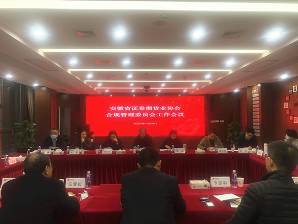 2020年12月8日下午,安徽省证券期货业协会合规管理专业委员会工作会议在华安证券股份有限公司投教基地大讲堂会议室召开。合规管理专业委员会全体委员参加会议,安徽省证券期货业协会副会长兼秘书长许忠东、安徽证监局机构监管处郭厚平应邀出席会议,会议由专业委员会主任委员刘晓东主持。