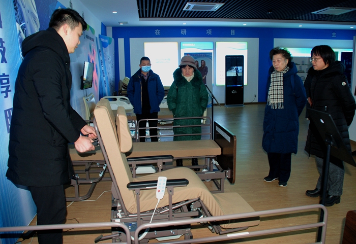 陈鹰理事长一行首先参观了该公司展厅,三联机器人科技公司总经理梅珑详细介绍了三联集团发展史及所获荣誉,以及公司产品的应用及市场情况。销售部经理向陈理事长一行演示了公司高端智能护理床产品,介绍了智慧软件平台,并详细解读产品应用场景。陈鹰理事长对公司护理床产品表达高度的赞赏,并认可公司产品新技术所解决的养老难点。