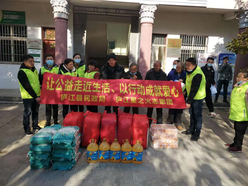 2021年新春佳节来临之际,近日,经庐江县民政局牵线搭桥,庐江县星之火志愿团开展送温暖慰问活动,爱心组织的党员和志愿者不畏严寒,带上节日的慰问品和新年祝福,深入该县罗河镇罗河社区、大包庄村,冶父山镇罗岗村、大岗村,柯坦镇枣岗村、城池村,乐桥镇杨岗村、黄山村,万山镇水关村、永桥村、万金山社区和金牛镇山南村、古城社区,看望慰问6个镇13个村(居)60名特困老人,向每位特困老人赠送价值600元大米、食用油、面条、羽绒被等生活用品和过冬棉被。
