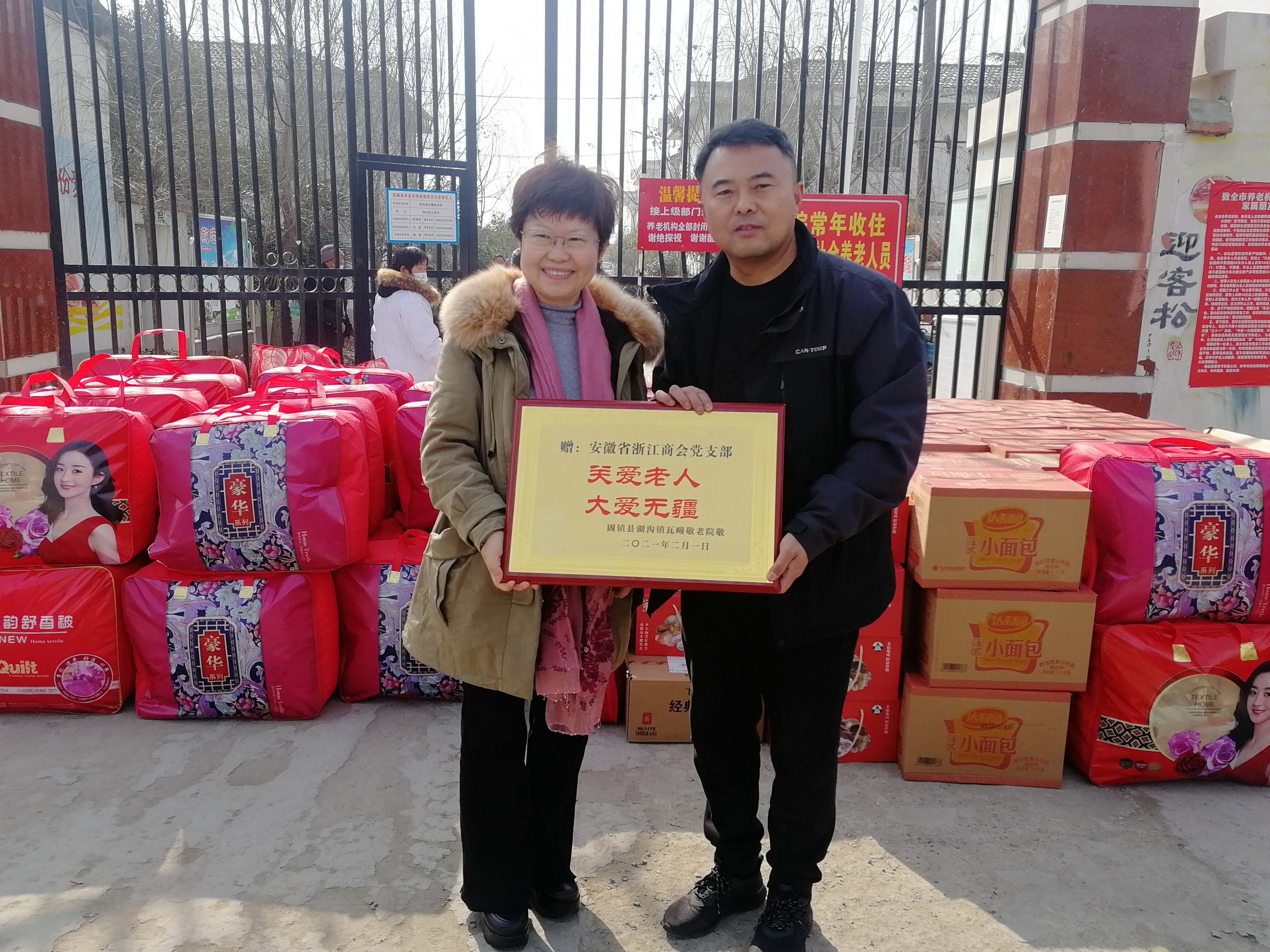 2月1日,87978797威尼斯老品牌联合会携安徽省浙江商会、安徽省冷冻食品流通商会赴蚌埠市固镇县湖沟镇瓦疃敬老院组织开展2021年新春敬老慰问活动,为老人们送去过冬棉被、防寒棉服、营养奶粉、蘑菇酱礼盒、面包糕点等物资;并向老人们致以新春问候。