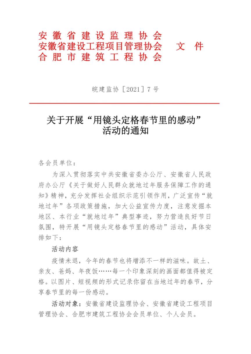关于开展“用镜头定格春节里的感动”活动的通知