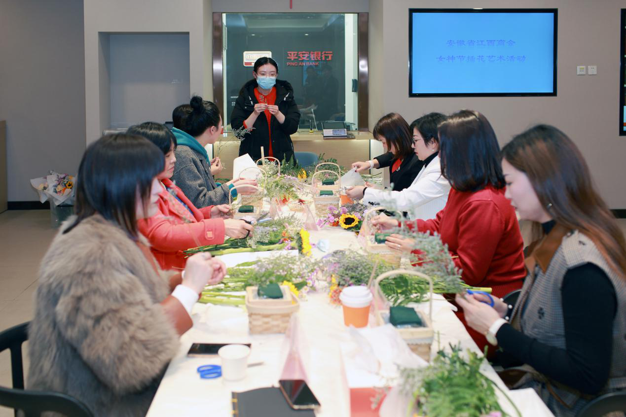 “一花一世界,一叶一乾坤”。插花是中国传统修身养性、陶冶情操的一门造型艺术。在第111个“三·八”国际劳动妇女节日当天,省江西商会为让女性会员过一个快乐、美丽的节日,特举办“美丽女神节·插花花艺活动”。商会监事会主席罗苏云、副会长陈旭敏、彭玉函,理事廖秀梅,会员戴画梅、江翠凤、熊陶英、吴丹等参加,名誉会长张凤兰应邀出席。监事会主席罗苏云代表商会致辞,副会长兼副秘书长彭玉函主持活动。