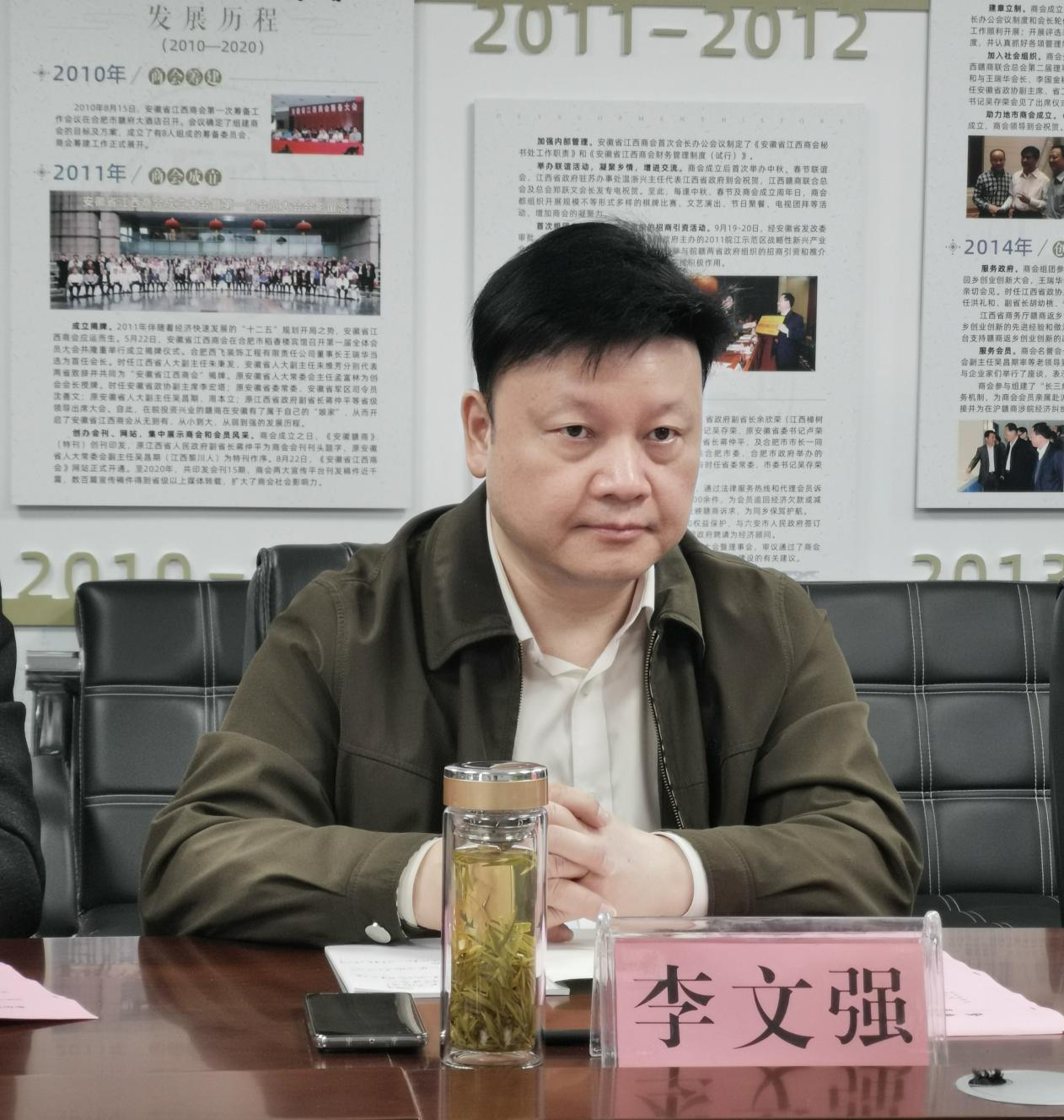 江西省政协副主席、省工商联主席雷元江表示,这次和李文强秘书长带领各个处室负责人来安徽,是向安徽省工商联学习先进工作经验和做法,同时来安徽省江西商会看望大家,在座的各位都是商界的精英,大家在异地发展不容易。刚才听了杨会长对商会成立以来工作情况介绍,也听取了几位企业家的企业介绍,很是欣慰。他指出:第一,商会的工作做得很到位,能够按照商会的章程,在安徽省工商联的指导下,能把赣商紧密的团结在一起,共同的为地方政府的事业,企业家的事业,江西家乡的事业,做出了重要的贡献。第二,听了大家的发言,认为安徽的赣商企业家素质、情怀都非常好。他对五位企业家代表的创业经历和事业成功表示充分肯定,认为体现了赣商敢打敢拼,厚德实干、义利天下的精神。第三,安徽与江西地理、文化相近,近十年发展很好,营商环境好,在皖赣商发展良好。他对在皖赣商继承弘扬江西商帮精神,弘扬“厚德实干、义利天下”的赣商精神,为赣皖两地做出贡献表示衷心感谢。