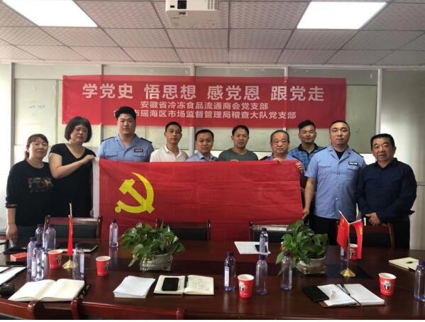 5月14日下午,安徽省冷冻食品流通商会党支部与合肥市瑶海区市场监督局稽查大队党支部,共建开展“学党史,悟思想,办实事,跟党走”主题党日活动。商会会长丁延红,大兴镇兴集党委委员季汝梁参加活动,安徽省冷冻食品流通商会执行秘书长王爱民主持。
