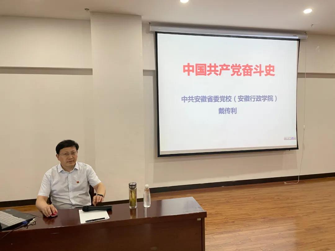 活动由商会执行秘书长陈志武主持,中共安徽省委党校(安徽行政学院)政法部副主任戴传利教授授课。戴教授以《中国共产党的奋斗史》和《中国共产党反腐败史》为主题,站在历史和的视角和全局的高度,用一个个生动感人的红色故事、一组组祥实有力的数据、一句句铿锵有力的革命语录,激情讲述了中国共产党百年奋斗历程和矢志不移的反腐败信念。