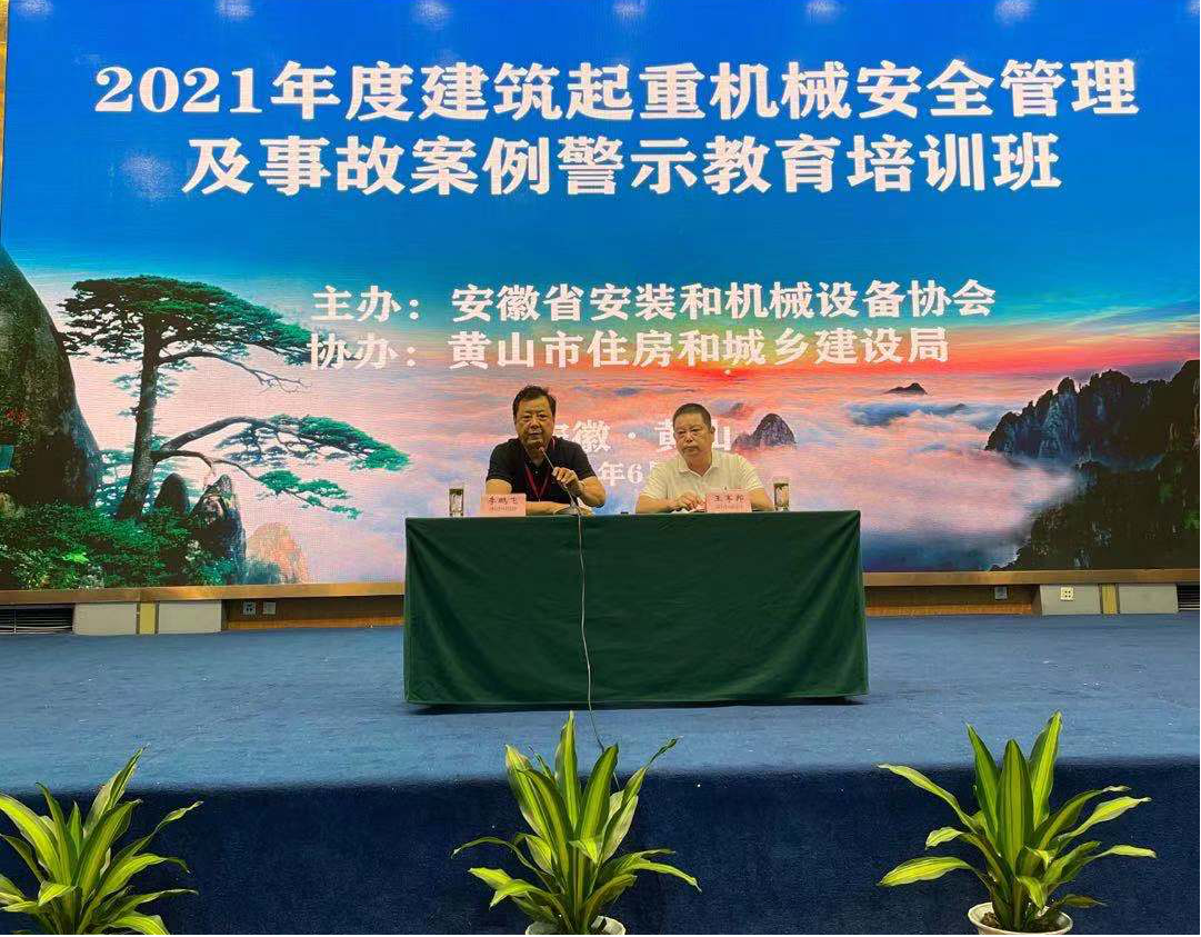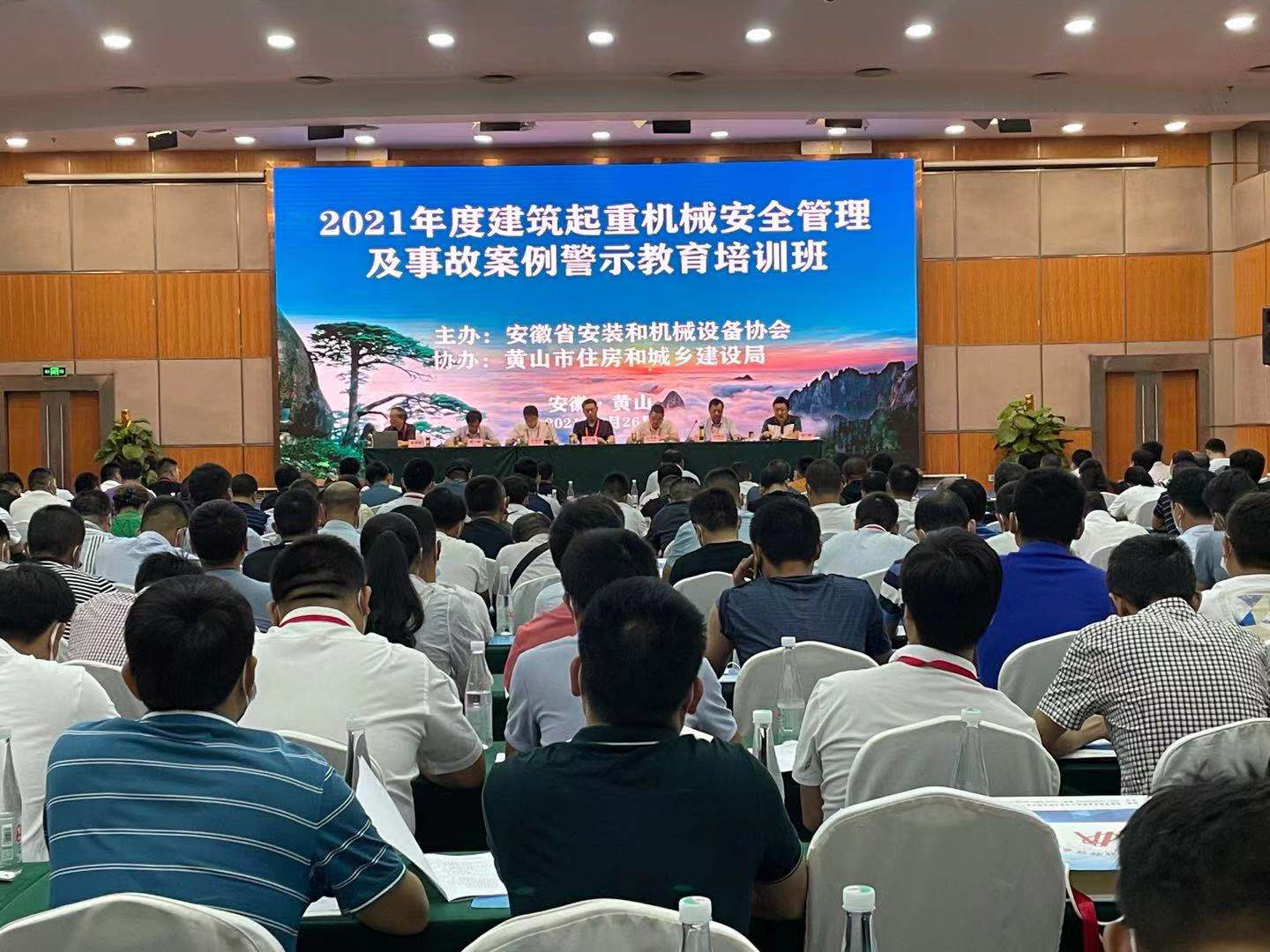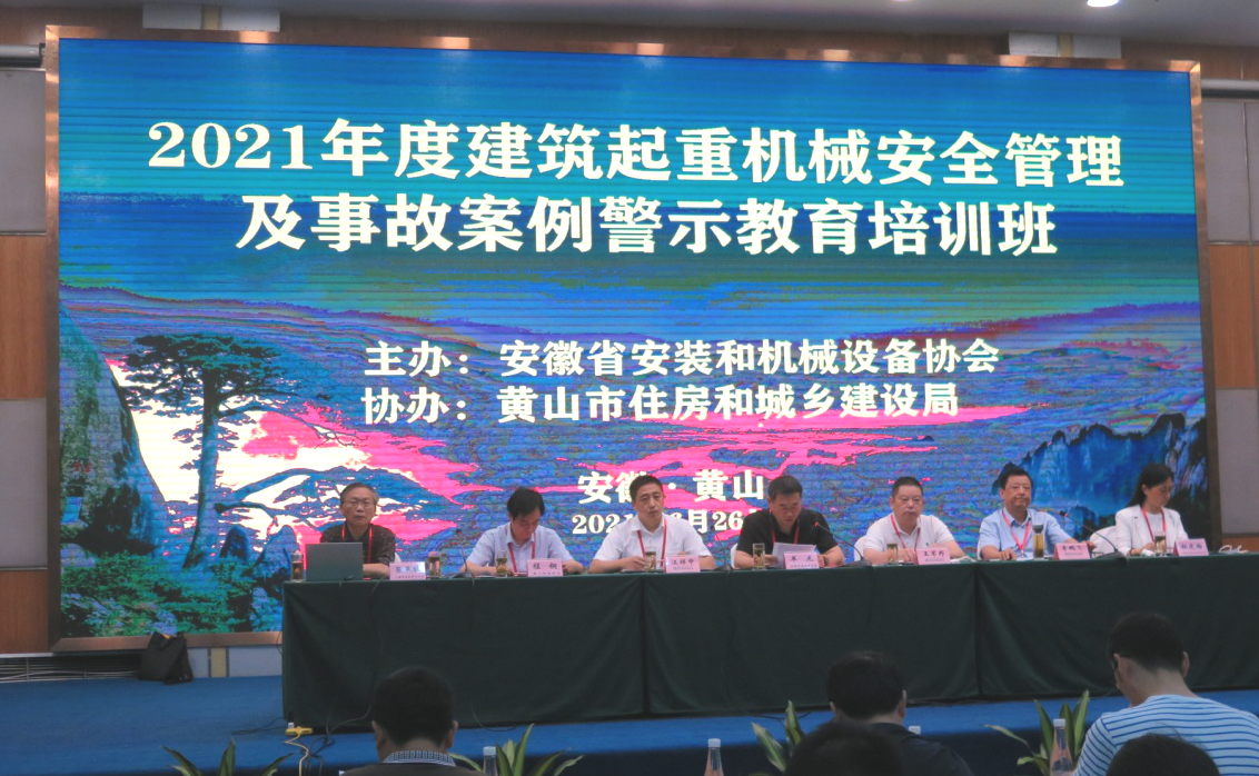 时至建党一百周年之际,为贯彻党中央、国务院安全生产工作决策部署,积极落实住房和城乡建设厅安全生产警示教育,在行业内大力弘扬“生命至上、安全发展”思想,加强建筑起重机械的安全管理,减少安全事故发生,2021年6月26日,由安徽省安装和机械设备协会主办、黄山市住房和城乡建设局协办的“2021年度建筑起重机械安全管理及事故案例警示教育培训班”在安徽省黄山市成功举办。特邀省住房和城乡建设厅建设稽查局副局长单龙到会指导并作重要讲话,省社会组织联合会秘书长汪祥中到会讲话,黄山市建管处主任程钢致欢迎辞,黄山市质安站副站长石锐作经验交流。来自行业主管部门分管建筑起重机械工作的相关负责人、联络员,会员单位,建筑施工企业及相关建筑起重机械企业的负责人、监理人员、安全员、管理人员及一线工作人员近300人参加培训。培训由协会副会长李鹏飞主持。