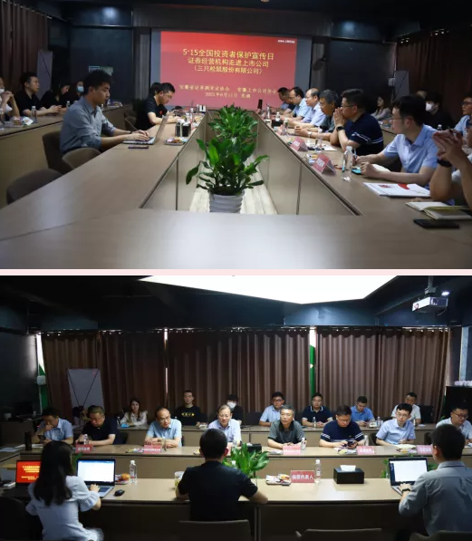 为贯彻落实证监会系统2021年工作会议精神和《国务院关于进一步提高上市公司质量的意见》的要求,增强市场主体的投资者保护意识,6月11日,在安徽证监局的指导下,安徽省证券期货业协会联合安徽上市公司协会组织部分会员单位开展了“5·15全国投资者保护宣传日”—证券经营机构走进上市公司(三只松鼠股份有限公司)投教宣传活动。