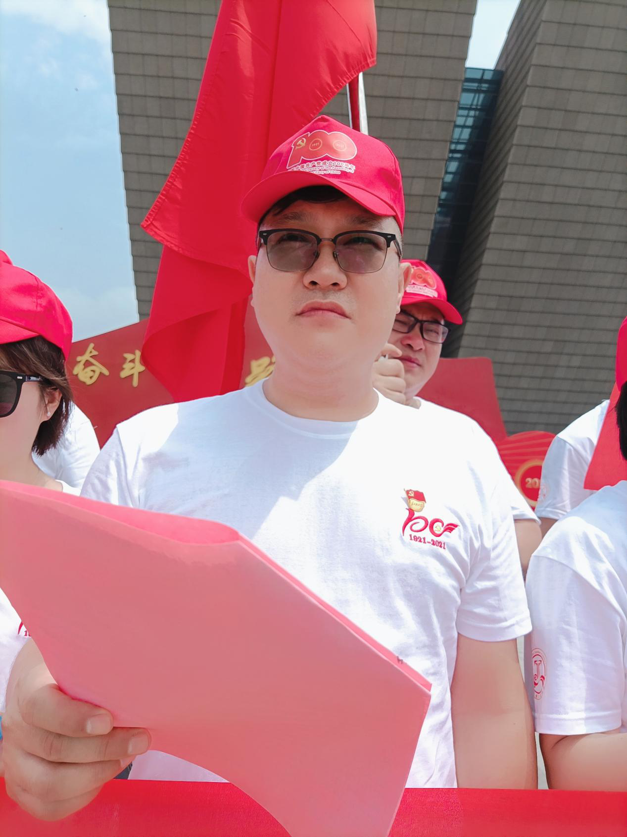 上午9点,所有参加活动人员统一着商会党支部定制的庆祝建党100周年文化衫,党员佩戴党员徽章,在商会合影留念。车辆统一张贴“庆祝中国共产党成立100周年”的车贴。全体人员分乘12辆车,第一辆车由旗手手持中国共产党党旗,在车队前面带领车队前行,寓意我们在党的领导下一路高歌前进。