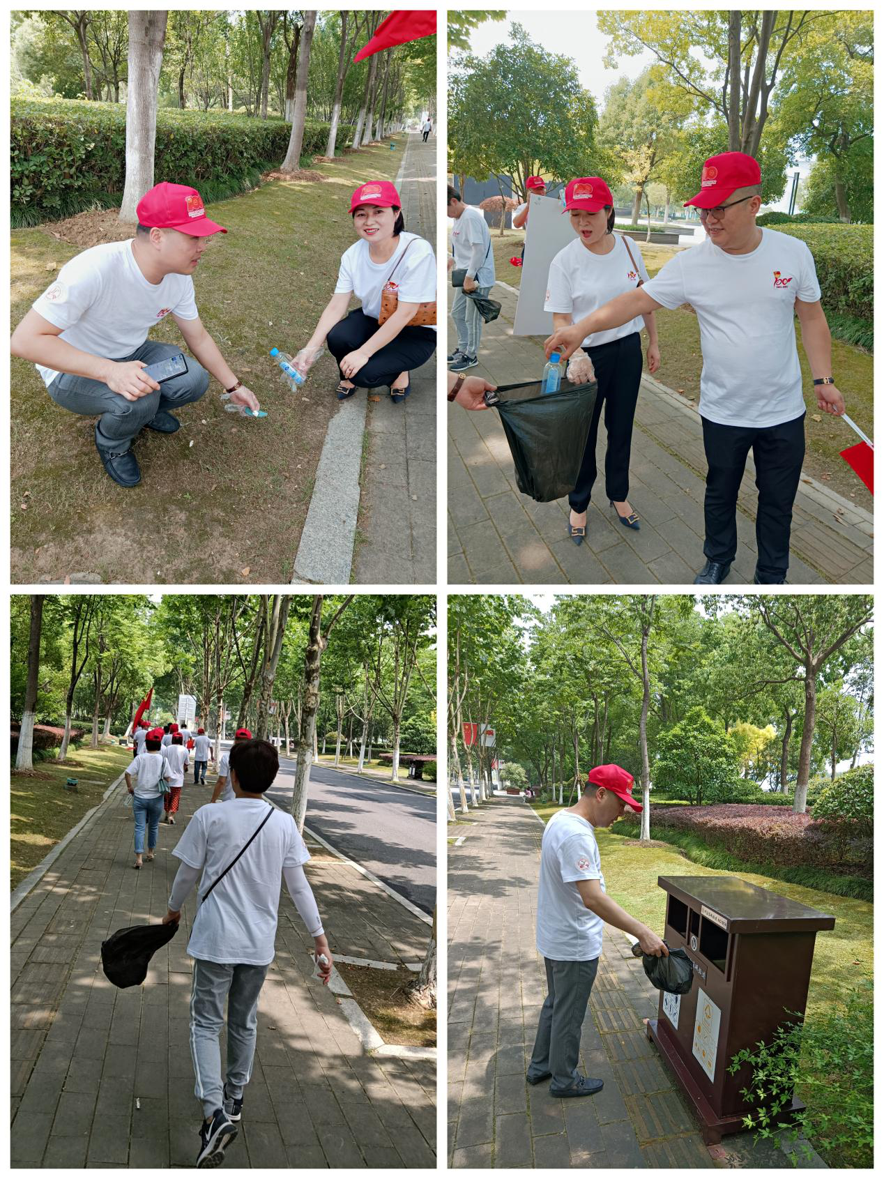 离开渡江战役纪念馆返回途中,党员积极响应党支部开展“建党百年日 党员环保行”活动,不顾烈日炎炎,不怕脏,不怕累,捡拾垃圾,增强环保意识。