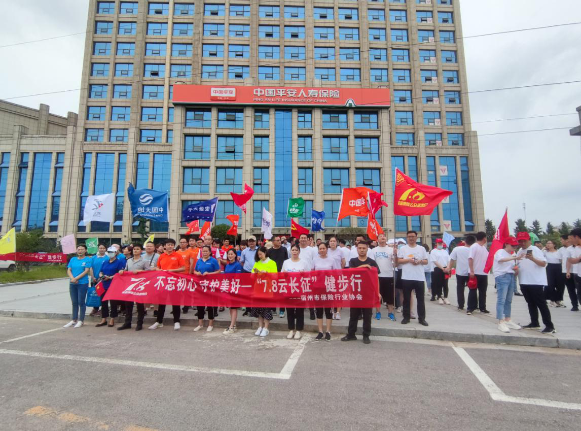 在宿州银保监分局的指导下,由宿州市保险行业协会主办、平安人寿宿州中支协办、国元农险宿州中支等16家保险机构参加的“不忘初心 守护美好——7?8云长征健步行”活动,于7月8日在平安人寿宿州中支大院启动。这是继自2013年首次开展“7.8全国保险公众宣传日”活动以来的第9次活动,已成为宿州保险业普及和宣传保险知识、提升服务品质、展现行业形象的重要宣传载体。