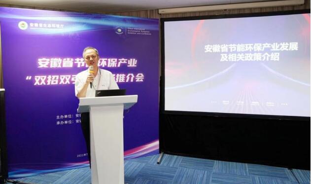 7月13日,由安徽省生态环境厅主办、安徽省环保产业发展促进会承办的“安徽省节能环保产业双招双引专场推介会”在北京隆重举行。来自上海、浙江、广东等20多家省、市环保产业协会及近30家省外重点环保企业参会。生态环境部监测司原司长、中国环保产业协会副会长罗毅到会致辞,省生态环境厅副厅长、一级巡视员罗宏作推介报告,科技财务处副处长陈海东主持会议。