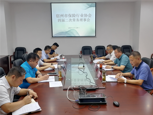 宿州市保险行业协会于7月29日上午召开四届二次常务理事会议,各常务理事参加会议,监事长列席会议,会长蒋?抑鞒只嵋椤?/span>