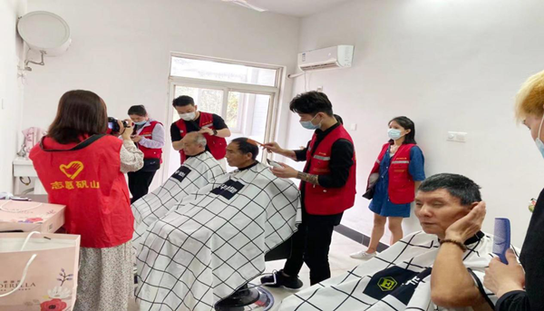 志愿者们为老人们带去适合老人吃的零食和水果,并为老人们免费理发。还组织了一场棋牌比赛,老人们“以棋会友”,当胡了一把大牌时,老人们开心的像个孩子一样。