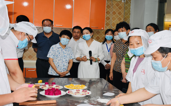 在安心家政,肖主席一行参观了一站式服务大厅、企业文化墙、厨艺培训室、家庭情景房、员工内部花式面点培训、高端保洁培训、收纳整理培训等,亲自体验了高端保洁产品功效,对产品的环保、健康、清新、无痕的高效清洁力给予了肯定。