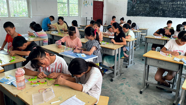 本次支教活动预期为25天,但由于突发疫情,在实际为期17天的暑期支教活动中,志愿者们为学生们带来了丰富多彩的素质拓展课程,孩子们在报名之时就对这些课程抱有极大的兴趣。志愿者老师们准备了地理、历史、心理、美术、音乐、手工、经典诵读、无人机、计算机、象棋、乒乓球、篮球等兴趣课。通过地理课,孩子们领略到中国大好河山以及地理之最;学习历史,孩子们知晓中国历代变迁并学习以史为鉴,继往开来;通过心理课,孩子们深入了解自己,建立自信;介于美术绘画、练习合唱、制作手工,孩子们的美学、乐理欣赏及动手能力得到了提高;通过阅读经典,不仅提升了学生的气质,更能丰富其精神;通过接触无人机、计算机,孩子们感触到了科技的魅力,并在心中埋下了一粒小小的种子,就此生根发芽,期待长大以后开出绚烂之花……除此之外,又另外开展了防震减灾演练活动、举行了以“我心向党,信念永恒”为主题的朗诵比赛及知识竞赛,并在日常课程中安排了安全教育,防治结核病等知识,从语言和行动上教授孩子们防震减灾自保能力和逃生技巧,通过丰富的活动培养孩子们爱国、爱党热情。