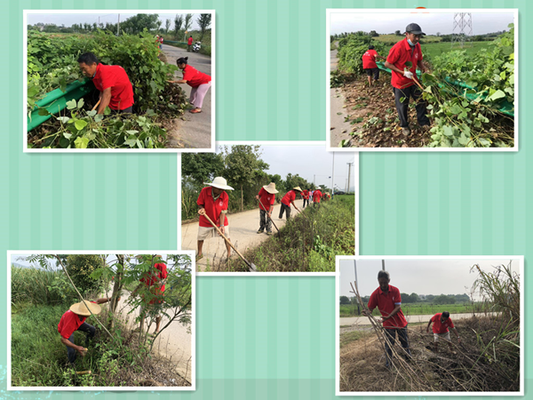 庐江县阳光公益协会有劳动能力低保人员清理道路两旁杂草。