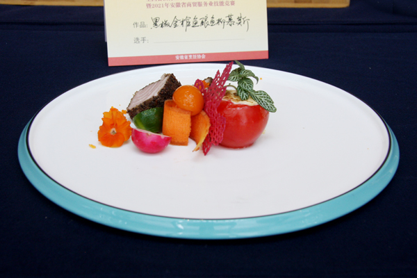 比赛中,选手们展现出扎实的理论功底和高超的技艺水平,普普通通的食材经过大厨们的精心烹制,变成了一道道活色生香的美食,“菊花笋”“莲子肉”“徽州三宝”“芒果酥”等各式美食琳琅满目,美不胜收。