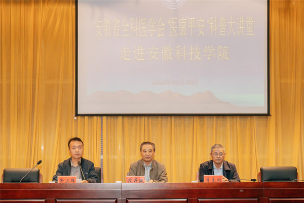 2021年10月13日下午,安徽省全科医学会“医康平安”科普大讲堂走进安徽科技学院开展“注重心理健康 促进全面发展”谈谈研究生心理健康科普讲座活动。“医康平安”是安徽省全科医学会全力打造的科普品牌,旨在促进医疗卫生和科普健康事业发展,凝聚学会专家智慧,探索科普新思路,调动学会资源,推动大众健康,积极回应基层群众关于健康生活、平安生活的关切。学会副理事长兼秘书长陈开地带队,蚌埠医学院心理医学专家李志刚教授等一行3人参加了活动。
