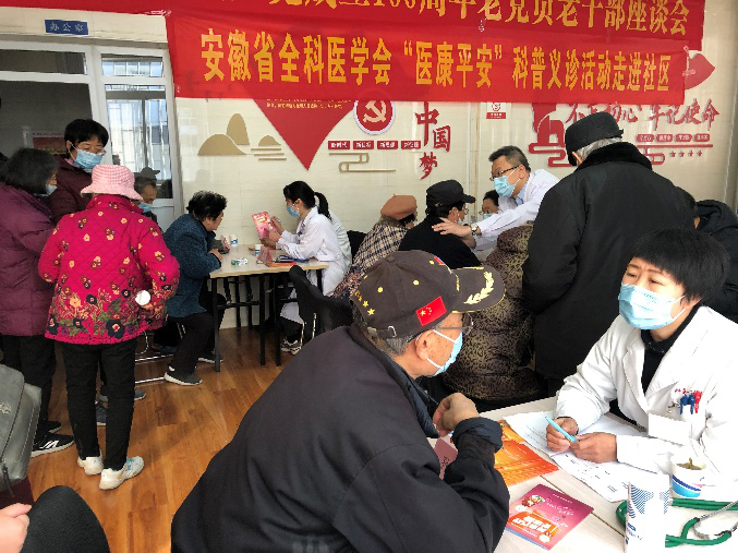 2021年12月18日上午,安徽省全科医学会组织蚌埠医学院第一附属医院内分泌科专家金国玺教授、毕娅欣教授、心内科专家黄宇理教授、神经内科等多学科十余位医务工作者在蚌埠市海校家属区军休三所海校服务站开展“医康平安”科普义诊活动,专家们热情细致的诊疗服务得到了到场军队离退休干部及家属的一致好评。