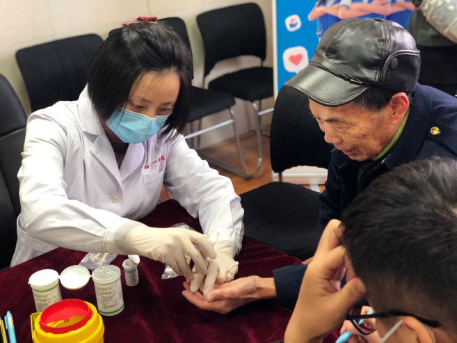 在活动现场,义诊人员通过设立咨询问诊台、悬挂醒目宣传标语、发放宣传资料等形式向老干部和家属科普心脑血管疾病冬季预防和糖尿病相关知识,并设立移动检测站免费检测血糖、血压、尿微量白蛋白。通过健康咨询和解读体检报告,耐心为他们答疑解惑,普及健康生活知识,指导心脑血管疾病及糖尿病人群的饮食、运动、胰岛素注射及日常注意事项。让每一位老干部在家门口就可以享受到三甲医院优质的医疗服务。现场检测出疑似糖尿病5人,疑似高血压6人,针对身体有异常的老干部专家们均给予细致地健康指导并建议到医院进一步检查。学会副理事长兼秘书长陈开地为到场老干部解答咨询。