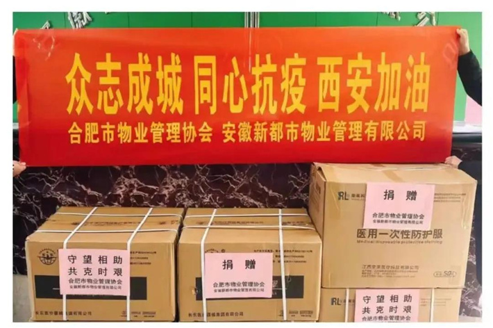 岁寒知松柏,患难见真情。安徽省物业管理协会会员单位积极行动,通过捐赠防疫物资的方式向西安物业同仁伸出援手。安徽物协副会长单位、合肥市物业管理协会连夜发动所属会员企业购买物资,共筹集了380500只医用口罩、4000只医用N95口罩、20只隔离面罩、5000副防护手套、730套防护服、30瓶免洗手液、120瓶消毒喷剂等防疫物资,第一时间发往西安。