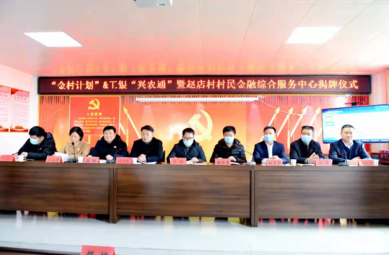 12月29日,阜阳市银行保险业金村计划暨赵店村村民金融综合服务中心揭牌仪式在颍东区插花镇赵店村委会举行。阜阳银保监分局副局长王超、颍东区乡村振兴局局长梁怀勇、插花镇党委书记宫亚南等有关单位负责同志出席揭牌仪式。这标志着全市银行保险业支持乡村振兴战略暨“金村计划”正式启动。