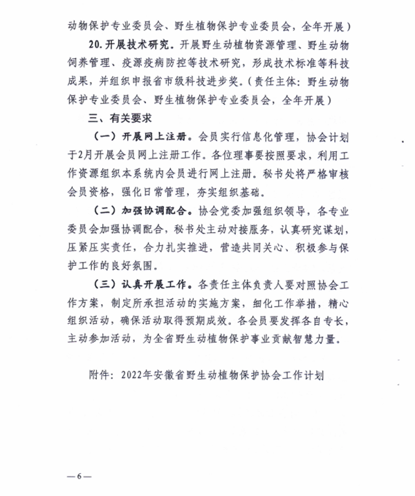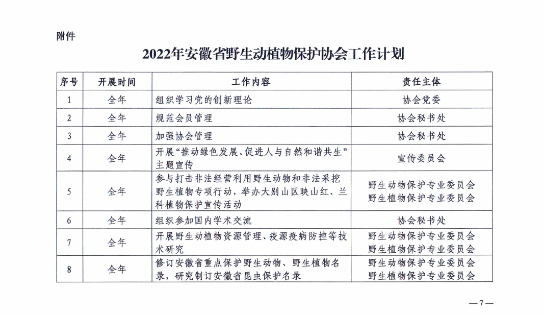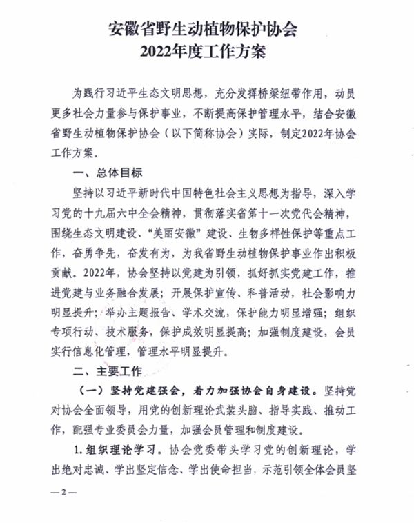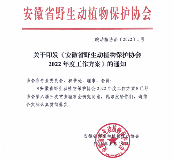安徽省野生动植物保护协会2022年度工作方案