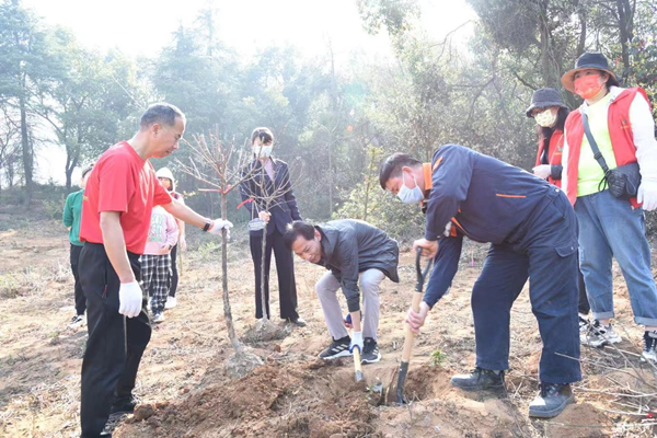 为丰富党日主题活动形式,加强社会组织党组织间共建合力,共同营造植绿、爱绿、护绿的良好氛围, 3月12日上午,铜陵市20余家社会组织党组织在郊区青年生态园共同开展了“党旗红 园林绿”3.12植树节暨社会组织联合党日活动。