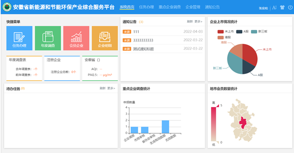 平台的正式上线,标志着促进会全方位服务企业进入数字化时代。登陆其中的安徽省年度新能源和节能环保产业重点企业基本情况调查模块端口,促进会及地市生态环境局不仅可实时对各填报企业数据信息及时审核,还可汇总各地市产业发展现状第一手数据。该项调查今后每年将在全省各级生态环境部门支持下,精准摸排全省新能源与节能环保产业现状并编制产业发展状况调查报告,为政府壮大这项战新产业提供决策依据。