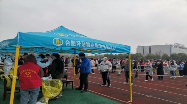 合肥市善水环境保护发展中心的工作人员在五里墩社区卫生服务站疫苗接种点组织居民进行有序的核酸检测,组织人员超过1000人次。他们协助社区人员做好入口引导、信息登记、防疫提示、咨询解答等工作,成为守护人民群众安全的重要力量。